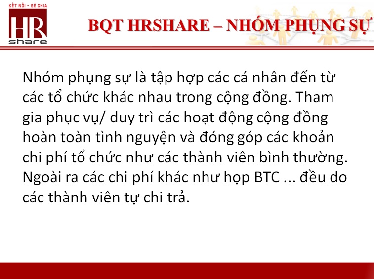 + Đóng góp, xây dựng, tham gia định hướng cho diễn đàn HRShare