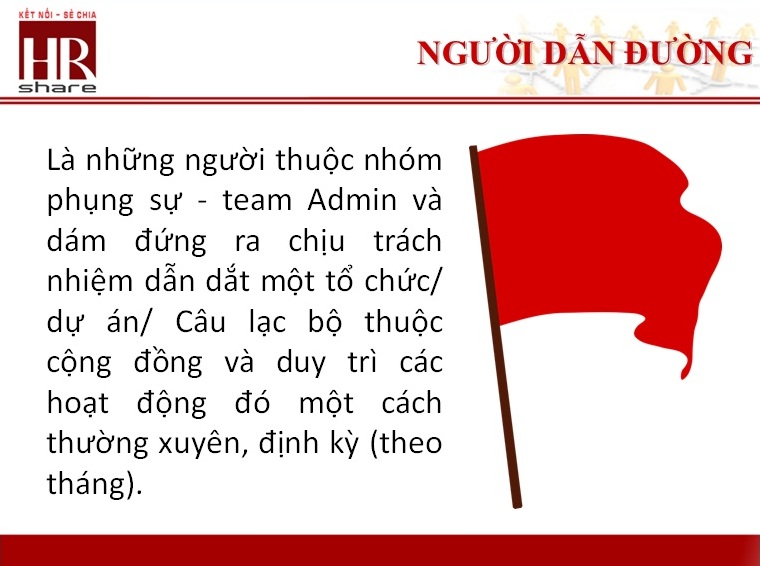 + Xây dựng cộng đồng nhân sự tại khu vực nhận trách nhiêm ( lên kế hoạch hoạt động, offline, trao đổi chuyên đề, .... )